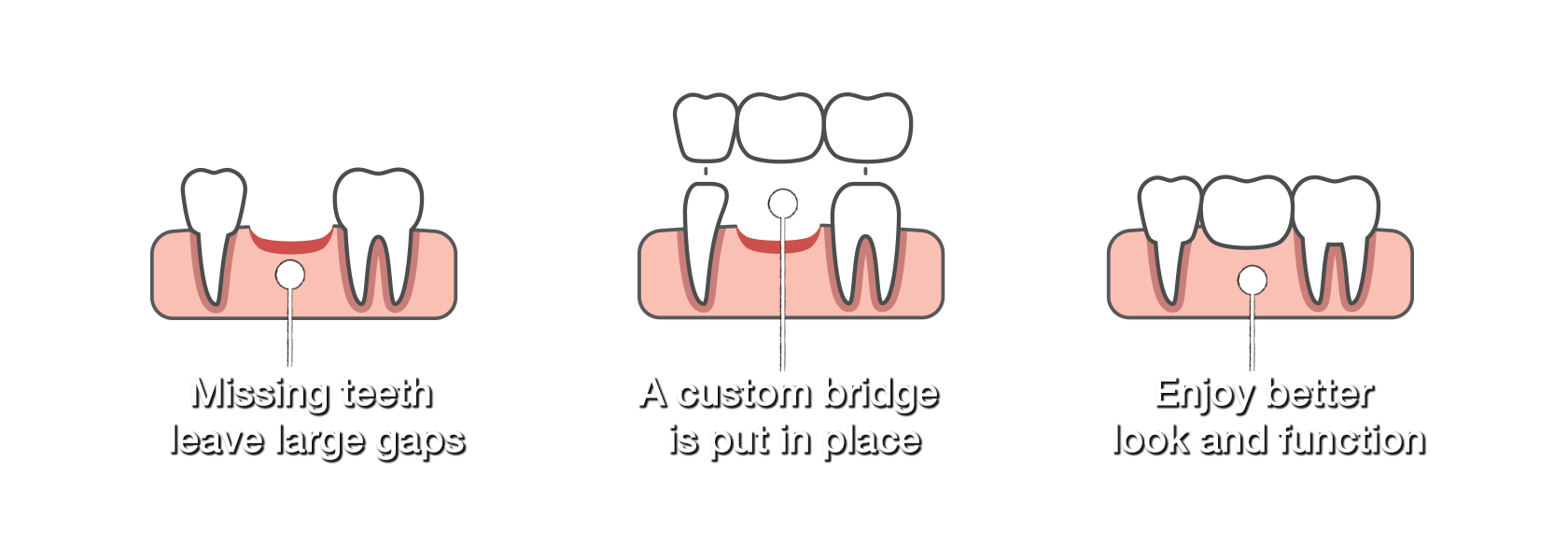 A dental bridge is a completely customized set of prosthetic teeth that fills the gap in your smile and provides lasting comfort.