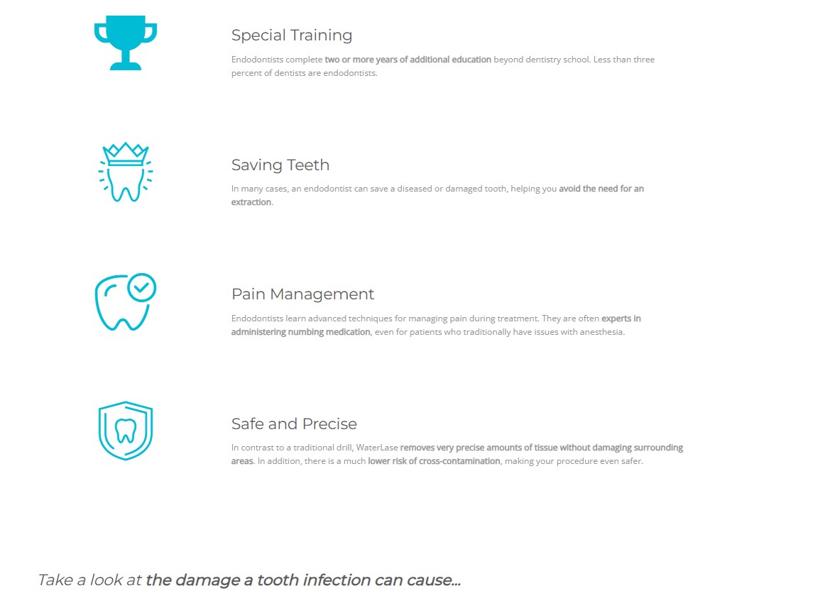 Despite advancements in dental implants and other tooth replacement technology, nothing looks, feels, or functions like your natural teeth . When injury or infection occurs, an endodontist can save your tooth and protect your smile. If you have suffered dental trauma, are experiencing a toothache, or have been told you need an endodontic procedure, contact an endodontist today.