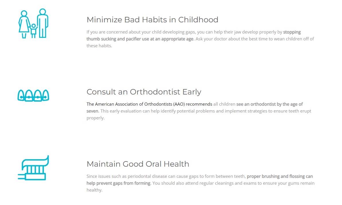 A gap left by an extracted tooth will involve a different treatment process – such as a dental bridge – than gaps caused by natural jaw development or childhood habits.