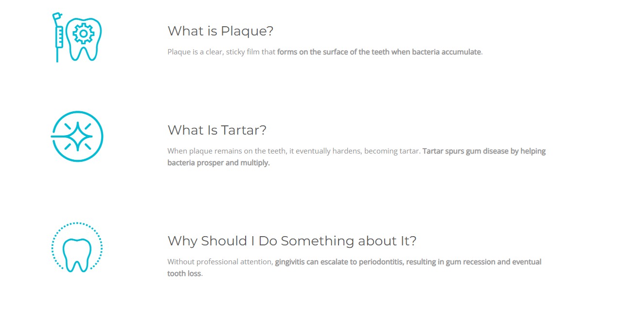 During your bi-annual checkup, your teeth will be professionally cleaned to remove plaque and tartar . Your doctor will also perform a comprehensive exam to look for any signs of gingivitis.