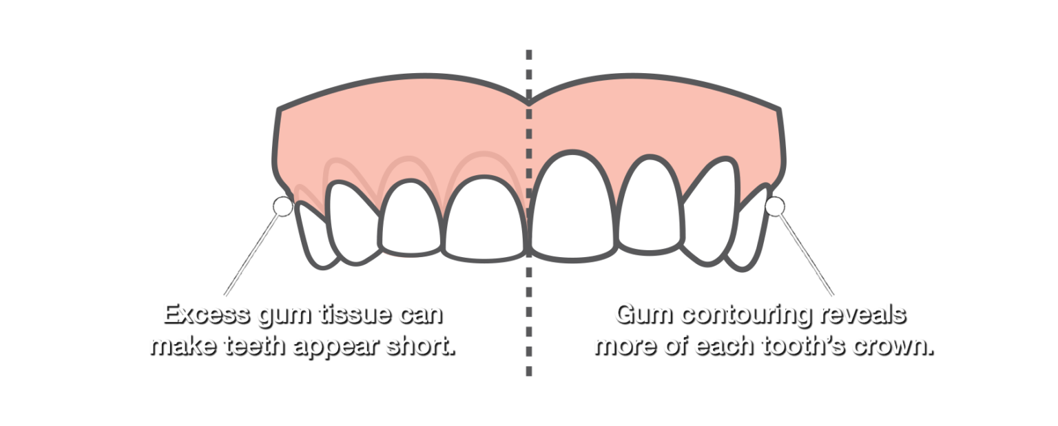 Speak to a dentist if excess gum tissue is causing you to feel unhappy with your smile. For the right patients, contouring can provide dramatic results in one visit.