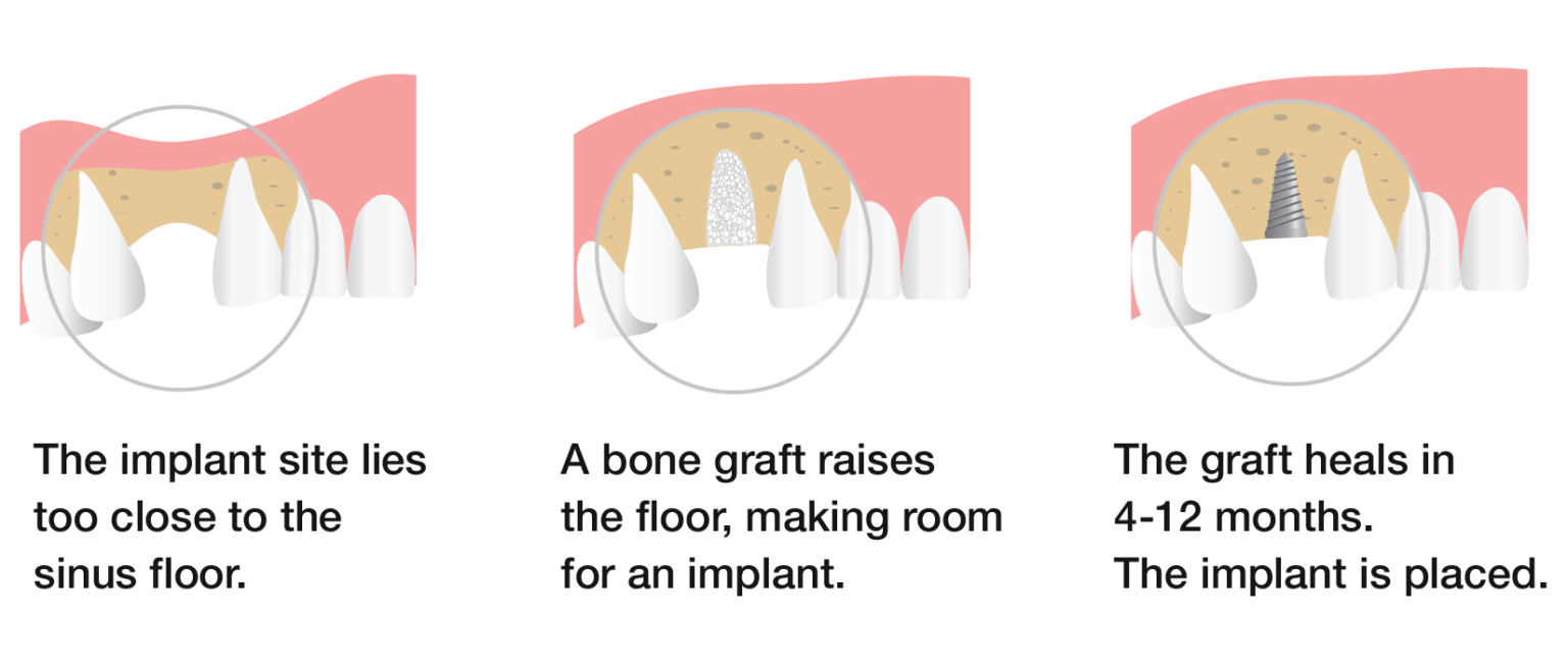 If your dentist believes that your sinuses lay too close to the treatment site to safely place standard dental implants, there are shorter implants that may be a viable option. However, there are conflicting reports regarding the effectiveness of these implants. Some studies have shown that they are not as strong, while others have found comparable success rates when short implants are used to support dentures. Your dentist can help you make an informed choice.