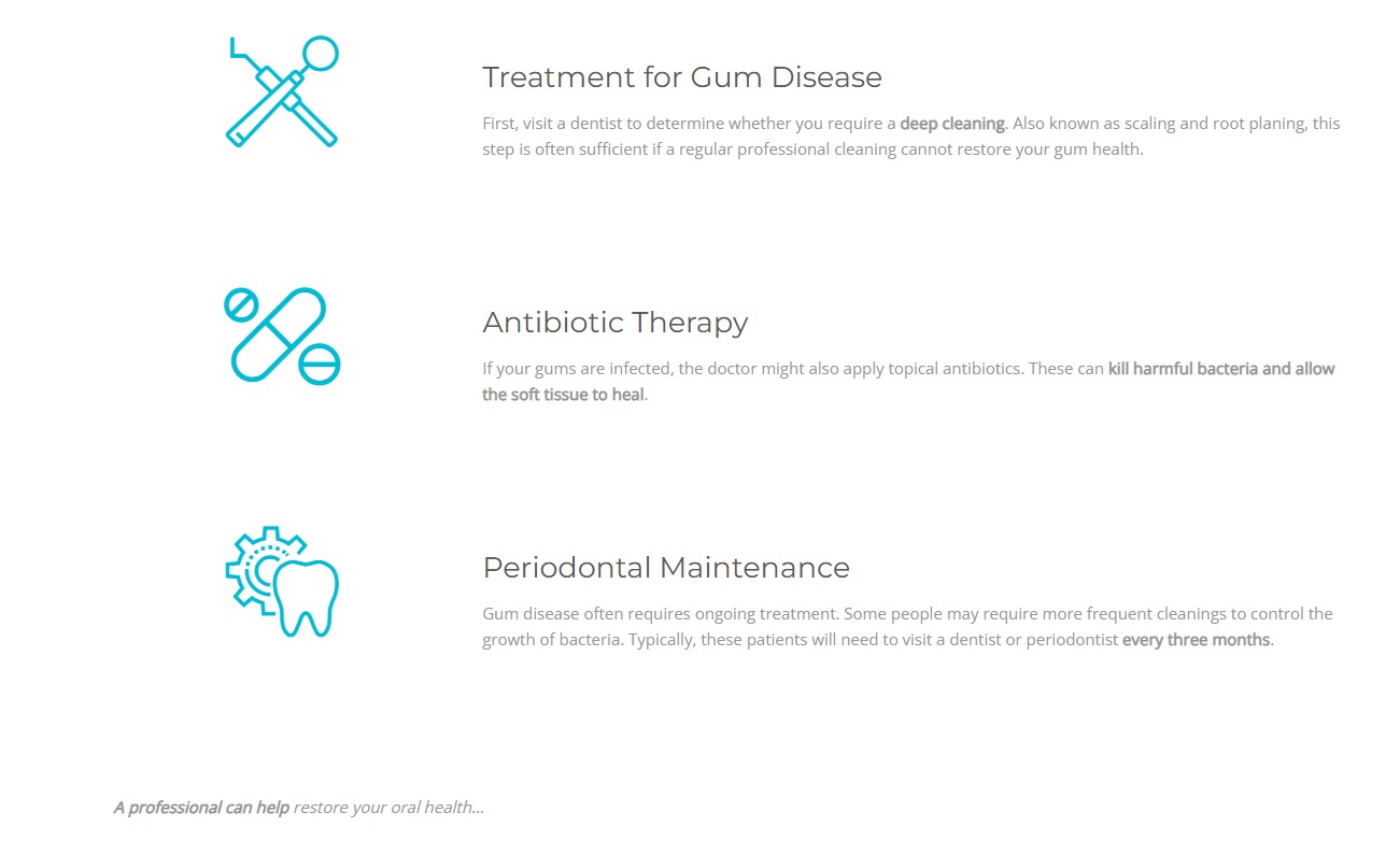 In some cases, symptoms will clear up on their own . This is often true for injuries, such as a burn to the mouth. If symptoms remain, your dentist can review the frequency and severity of your concerns and recommend an appropriate treatment. Your doctor may also perform an oral exam and measure periodontal pockets if you suffer from gum disease.